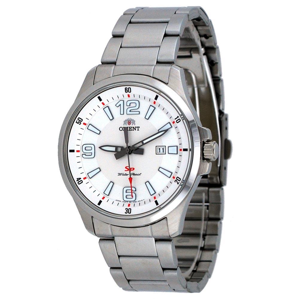 Orient UNE1006W SP men’s watch features a 42mm wide and 8mm thick solid stainless steel case with a fixed bezel and a textured push-pull crown. Orient UNE1006W is powered by an accurate Japanese quartz movement. This stylish watch also features a milky white dial with white accents black luminous skeleton hands and hour markers along with the date display function, scratch resistant mineral crystal and water resistant to 50 meters. Orient UNE1006W is equipped with a 20mm wide solid stainless steel bracelet with a fold-over deployant safety clasp. Orient UNE1006W men’s SP white dial stainless steel bracelet watch is brand new and comes in an original Orient gift box and is backed by a 1 year limited warranty.