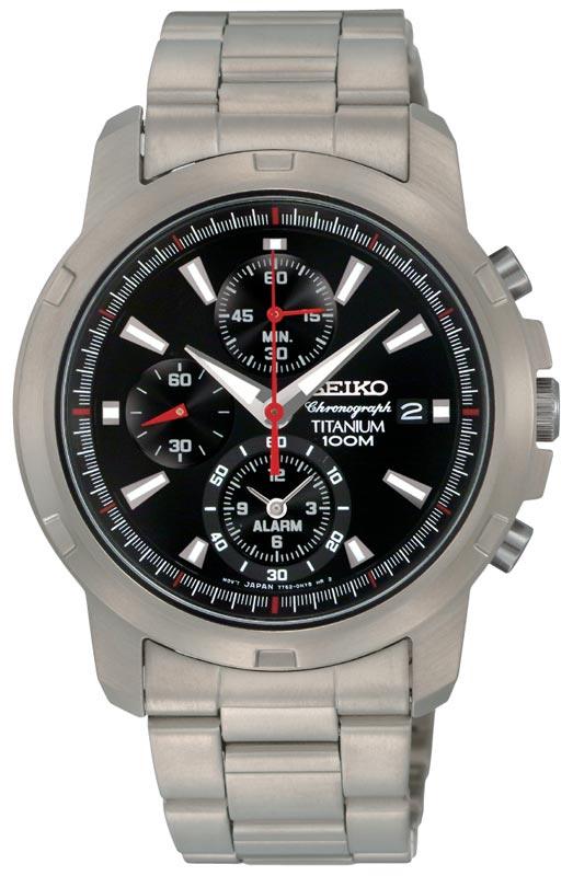 Seiko SNAE47 Men’s watch offers a classic multifunctional timepiece. This cool watch comes with silver tone titanium case with screwdown caseback and bracelet with push-button release clasp. It also features scratch resistant hardlex crystal, water resistant to 100 meters and black dial with date display, chronographs, alarm function and luminous hands and hour markers. Seiko SNAE47 is backed by Seiko’s 3 year factory warranty.